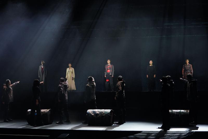 舞台上,“带伤甲胄”幕布成为作品象征性视觉标记。舞好意思筹划以剧中台词“伤疤是英杰的勋章”为灵感,索取出“带伤甲胄”这一中枢视觉标记。舞好意思筹划吴西周将甲胄升沉为可纯真改革的巨型幕布,这一幕布既是科利奥兰纳斯的作战铠甲,亦然他无法挣脱的侥幸桎梏,通过机械编程截止其平移、旋转、扭捏,与东说念主物的心理流转深度契合。流放场景中,幕布与主东说念主公的相向通顺突显其独处;劝和戏里,幕布的扭捏呼应着扮装的内心扞拒。